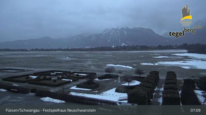Die Webcam blickt auf den Garten von Ludwigs Festspielhaus in Füssen am Forggensee.