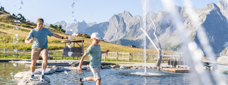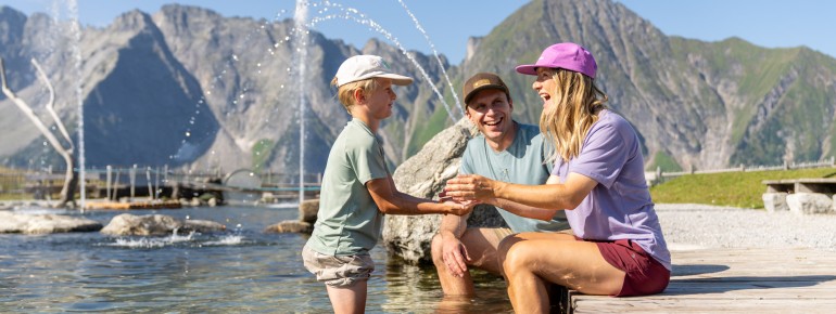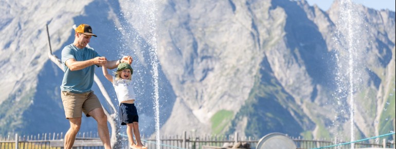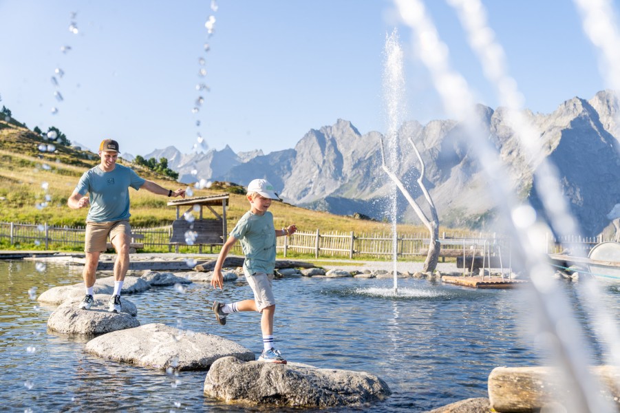 Abwechslungsreiche Spielzonen und Wasseroasen begleiten den gemütlichen Wanderweg entlang des 155 Meter langen Baches und versprechen viel Spaß und Abwechslung auf dem Weg vom AhornSee in Richtung AdlerBühne Ahorn.