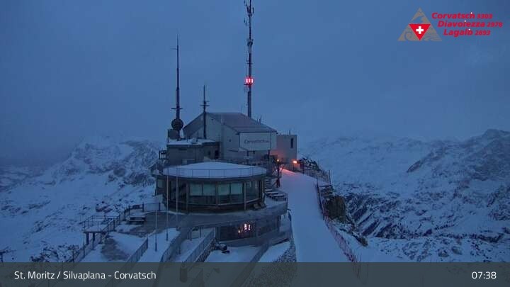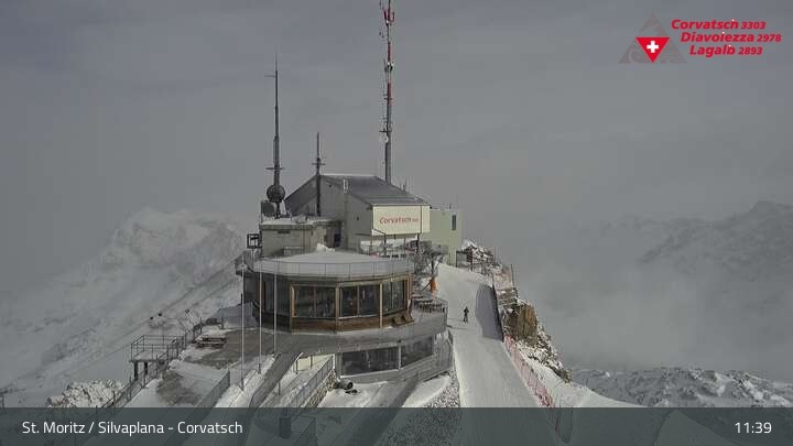 Die Webcam zeigt einen tollen Panoramablick von der Bergstation der Seilbahn am Corvatsch auf den Silvaplanersee.