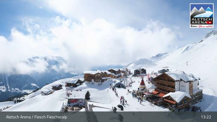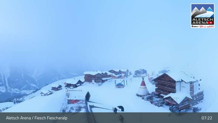Die Webcam zeigt den Blick auf die Fiescheralp im Wallis in der Schweiz.