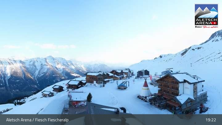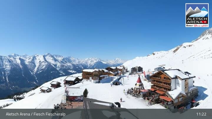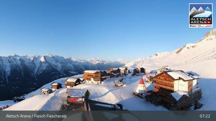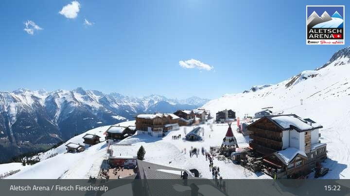 Webcam Aletsch Arena: Blick auf die Fiescheralp, 2,220 m