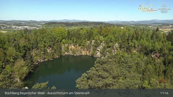 Webcam Büchlberg und Steinbruchsee vom Aussichtsturm, 527 m