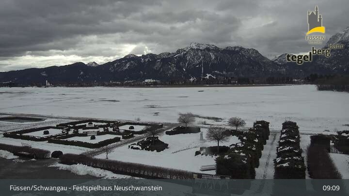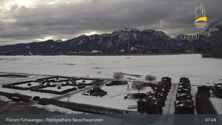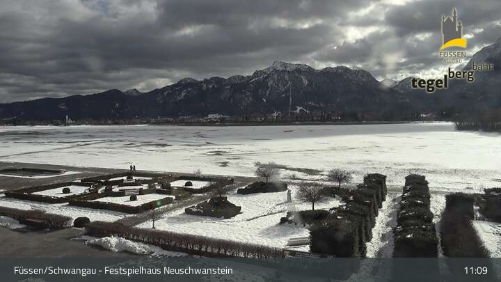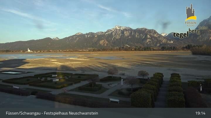 Die Webcam blickt auf den Garten von Ludwigs Festspielhaus in Füssen am Forggensee.