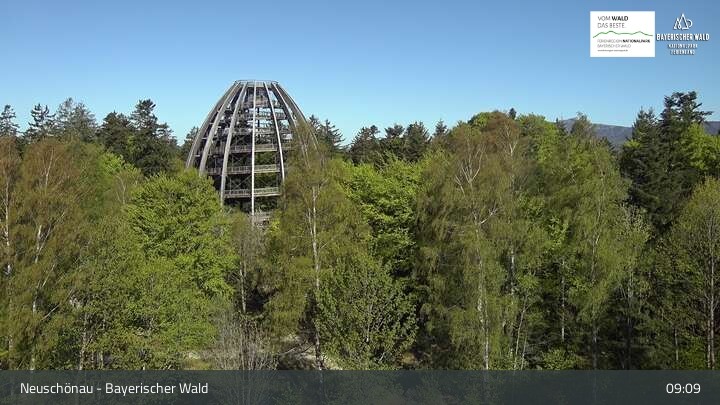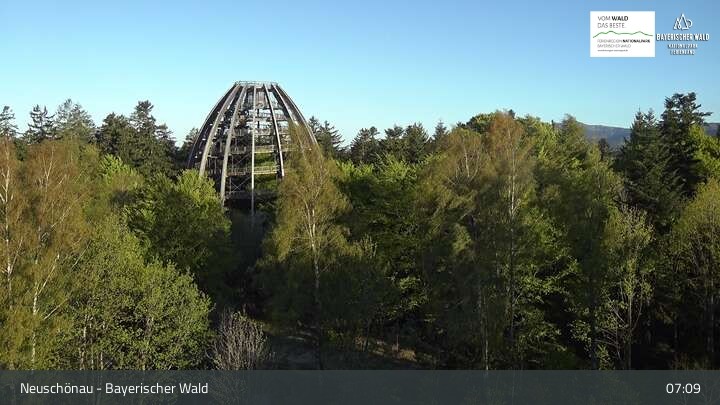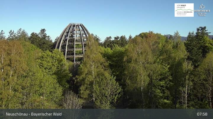 Die Kamera befindet sich in Neuschönau auf dem Dach des Besucherzentrums Hans-Eisenmann-Haus im Nationalparkzentrum Lusen im Bayerischen Wald. Zu sehen ist auch der über 40 Meter hohe Turm des Baumwipfelpfads.