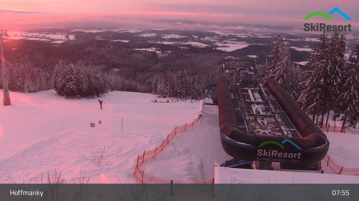 Hier blickst du auf die Bergstation des Hoffmanky Lifts im tschechischen Skigebiet Černá hora.
