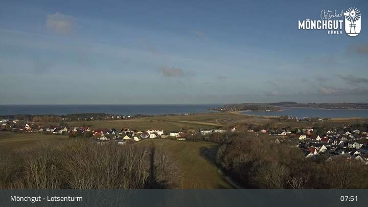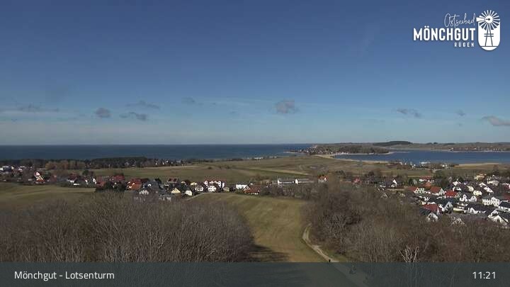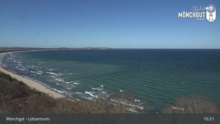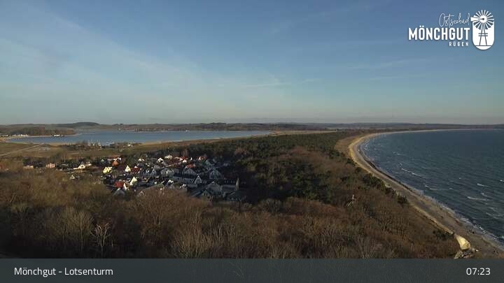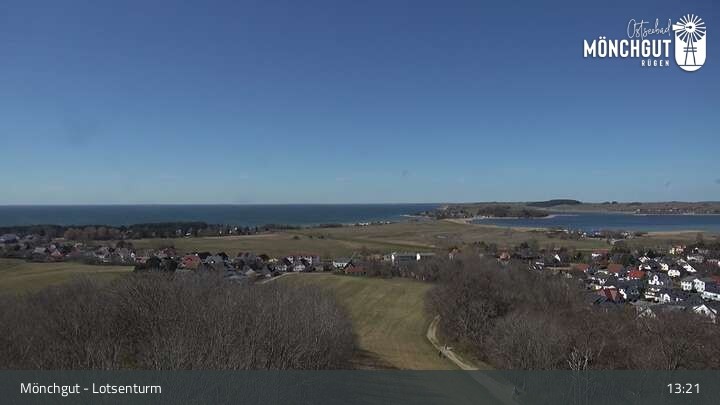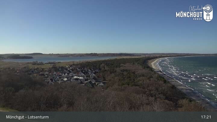 Die Webcam ist am Lotsenturm bei Thiessow positioniert und zeigt den Blick auf die Halbinsel Mönchgut, die zu Rügen gehört und an der Ostsee liegt.