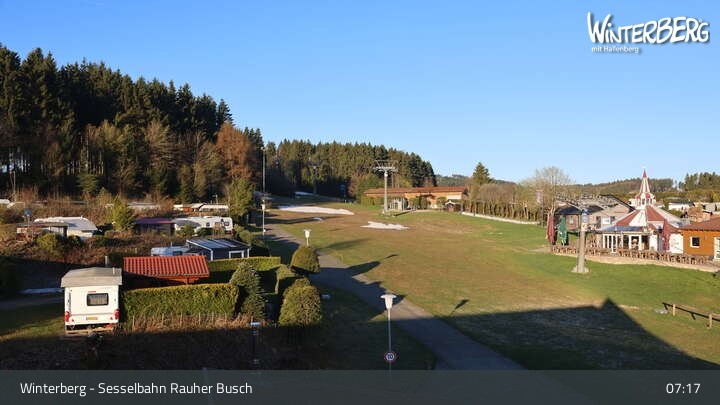Webcam Winterberg: Blick auf die Sesselbahn "Rauher Busch", 2205 ft