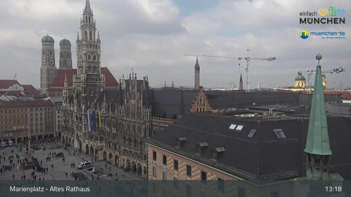 Die Webcam blickt vom Alten Rathaus auf den Marienplatz, der zentrale Platz der Münchener Innenstadt.
