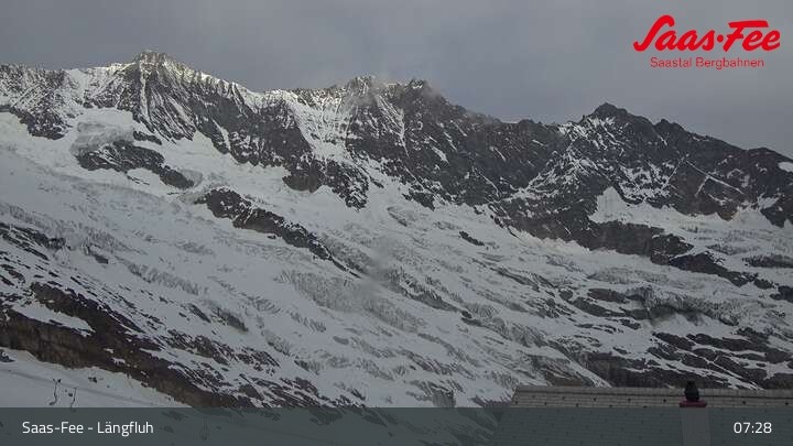 Panoramablick von der Bergstation der Längfluhbahn auf den Feegletscher.