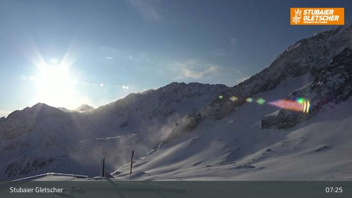 Die Kamera befindet sich an der Bergstation der Eisgrat Gondel am Stubaier Gletscher.