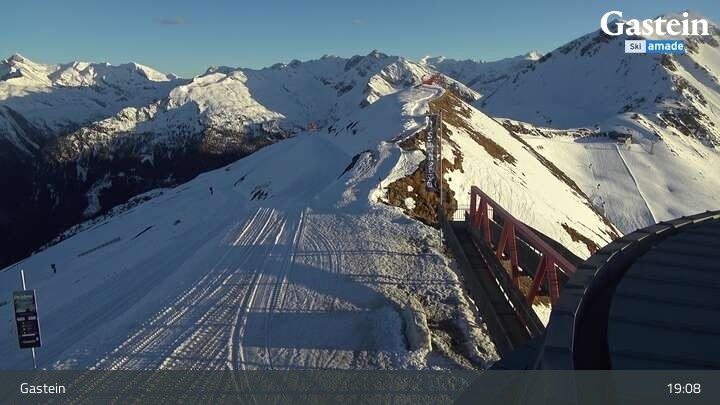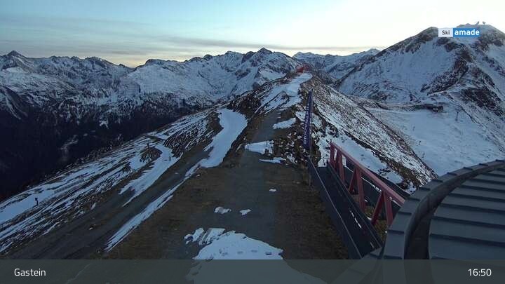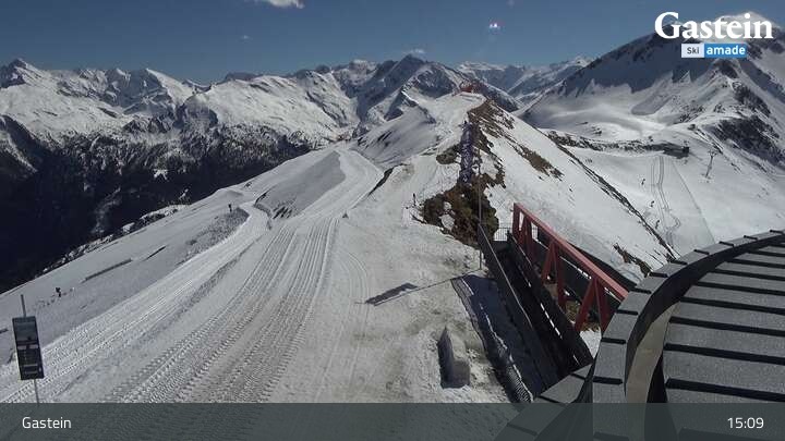 Die Webcam blickt von der Südseite der Bergstation am Stubnerkogel auf die umliegende Bergwelt von Bad Gastein.