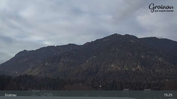 Die Live-Webcam zeigt vom Freibad aus einen Rundumblick auf das Bergdorf Grainau und seine Umgebung. Zu sehen sind unter anderem die Zugspitze, der große und kleine Waxenstein sowie der Hohe Ziegspitz.