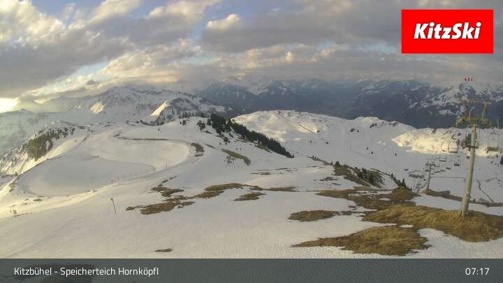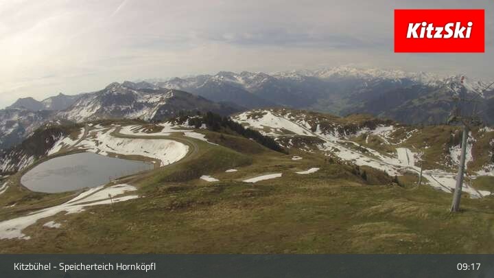 Die Webcam befindet sich auf rund 1.700 m Höhe und blickt auf den Speicherteich Hornköpfl sowie die Kitzbüheler Alpenwelt.