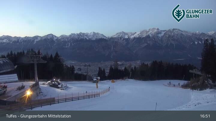 Die Webcam ist an der Mittelstation des Glungezer positioniert und zeigt einen tollen Panoramablick auf das Ski- und Wandergebiet in Tulfes.