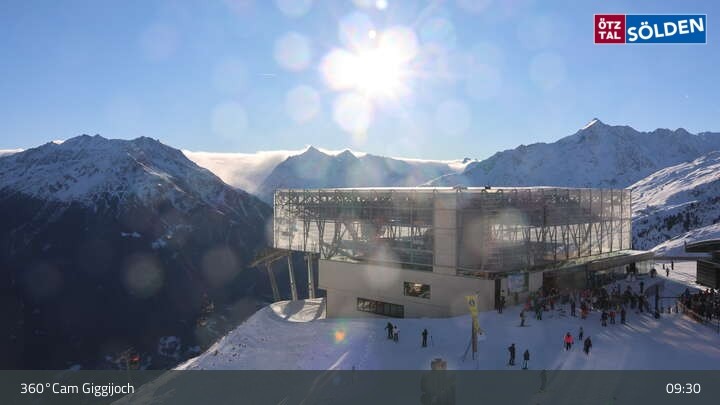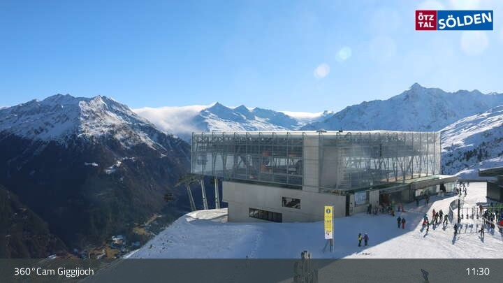 Blick vom Giggijoch auf die Bergbahnen sowie die umliegendeAlpenwelt von Sölden.