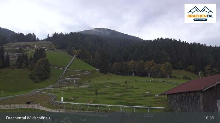 Hier siehst du aktuelle Bilder vom Familienerlebnis Drachental in Oberau in der Wildschönau. Die Webcam zeigt unter anderem den Alpine Coaster Drachenflitzer.