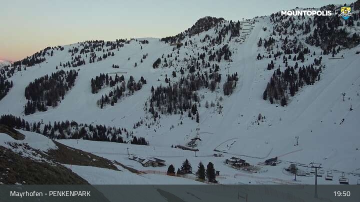 Hier blickst du auf den Vans Penken Park sowie den Sun-Jet Lift im Skigebiet Mayrhofen.