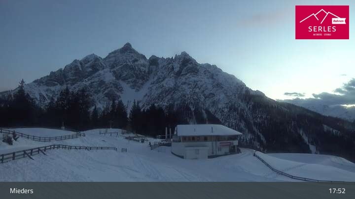 Die Webcam eröffnet den Blick von der Bergstation Koppeneck auf den Hausberg von Mieders, die Serles. Zu sehen sind außerdem das Bergrestaurant Koppeneck mit Kinderspielplatz und der Speichersee.