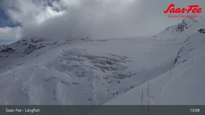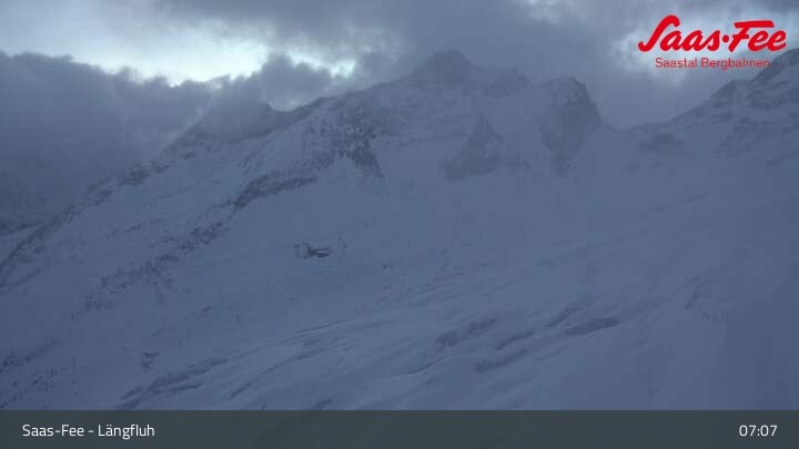 Panoramablick von der Bergstation der Längfluhbahn auf den Feegletscher.