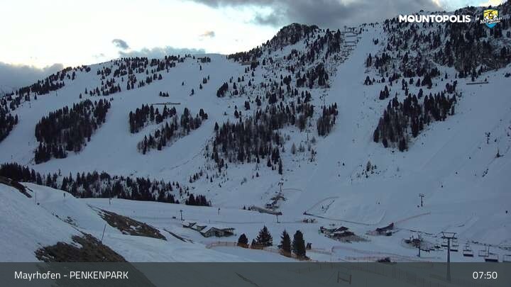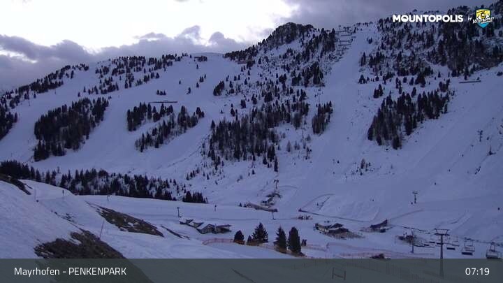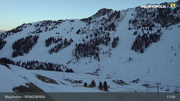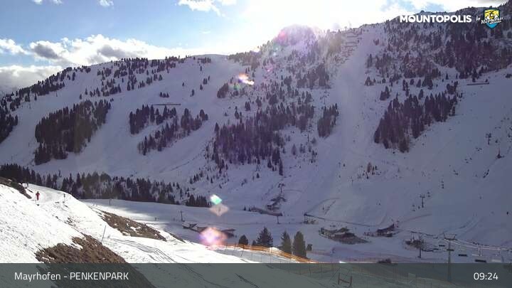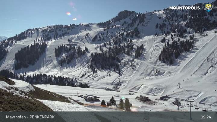 Hier blickst du auf den Vans Penken Park sowie den Sun-Jet Lift im Skigebiet Mayrhofen.
