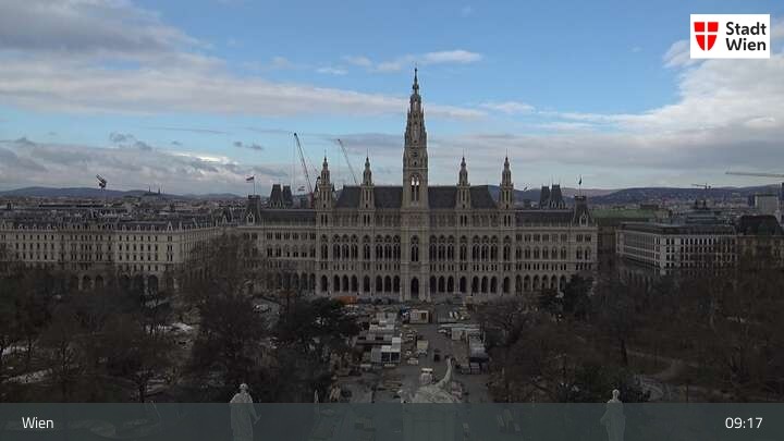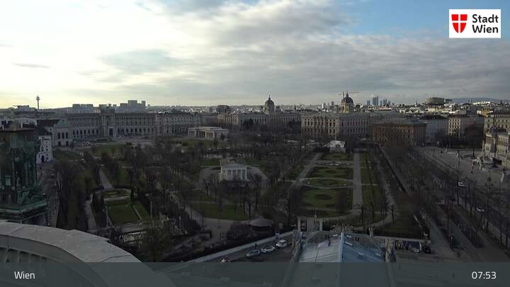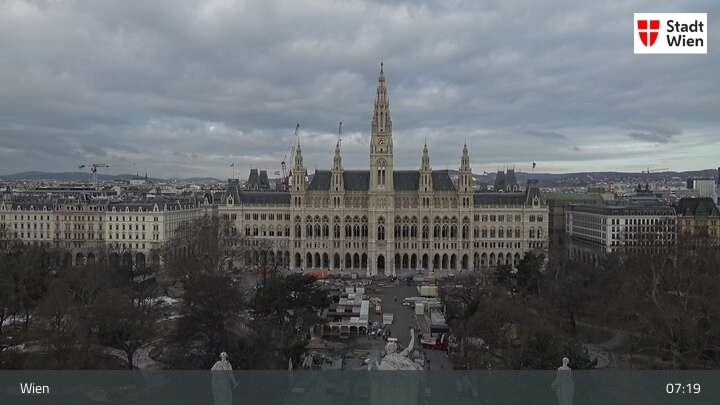 Die Webcam bietet dir einen Rundumblick über den ersten Wiener Bezirk. Du siehst das Burgtheater und das Rathaus.