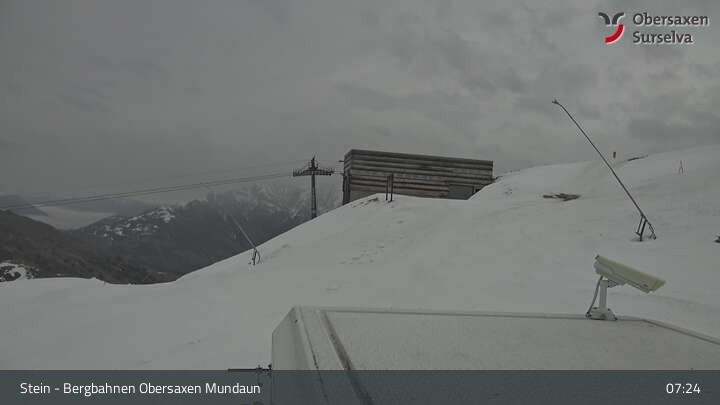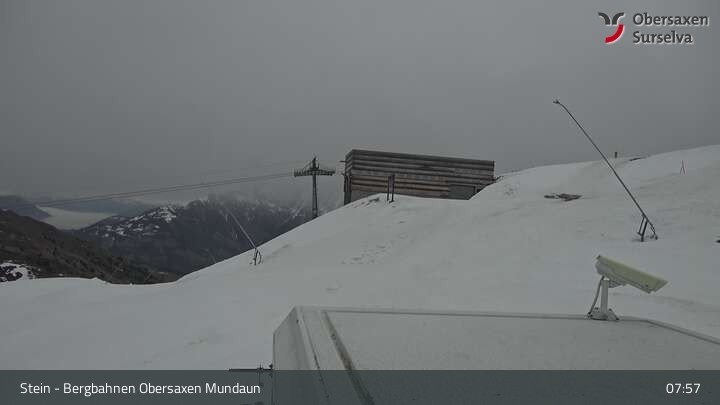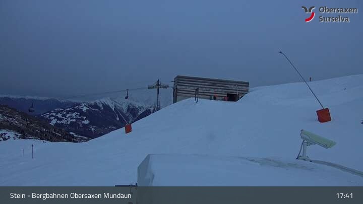 Die Webcam zeigt die Bergstation des Misanenga - Untermatt Lifts in Obersaxen in Graubünden. Die umliegende Alpenwelt ist ideal für Wanderungen und Mountainbiken geeignet.