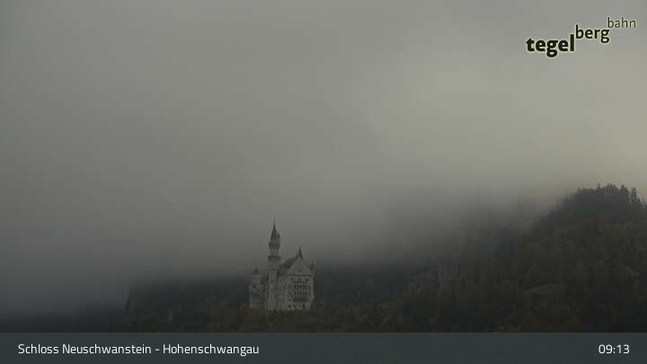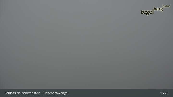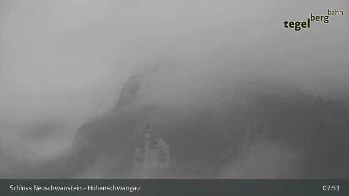 Die Kamera befindet sich am Schloss Hohenschwangau und schwenkt vom Schloss Neuschwanstein zum Museum der Bayerischen Könige.
