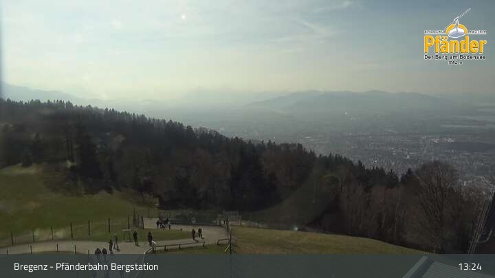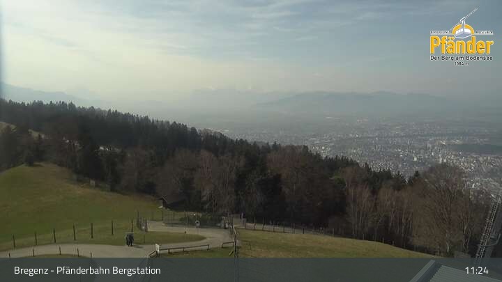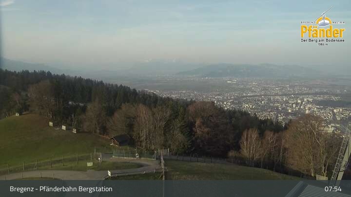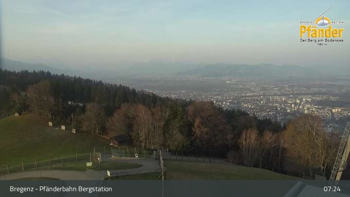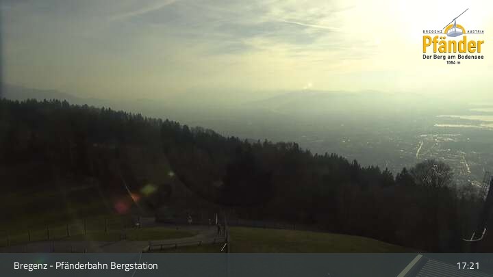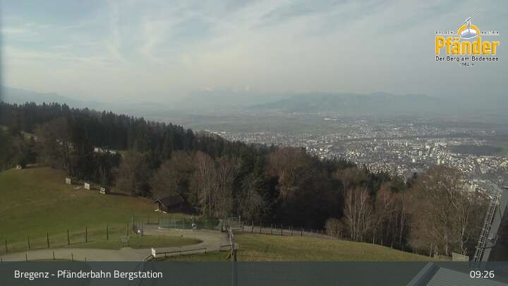 Die Video-Webcam zeigt einen traumhaften Panoramablick von der Bergstation am Pfänder hinunter auf den Bodensee und die Stadt Bregenz.