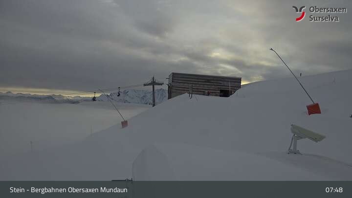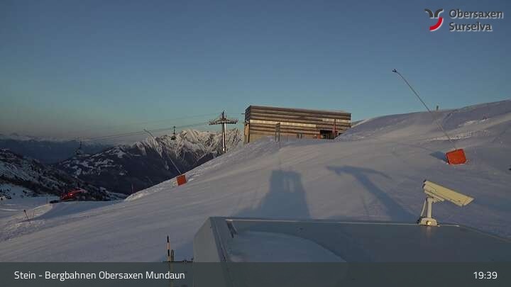 Die Webcam zeigt die Bergstation des Misanenga - Untermatt Lifts in Obersaxen in Graubünden. Die umliegende Alpenwelt ist ideal für Wanderungen und Mountainbiken geeignet.