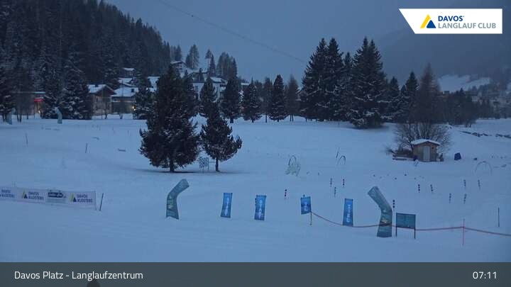 Blick auf den Golfplatz in Davos. Im Winter befindet sicher hier das Langlaufzentrum.