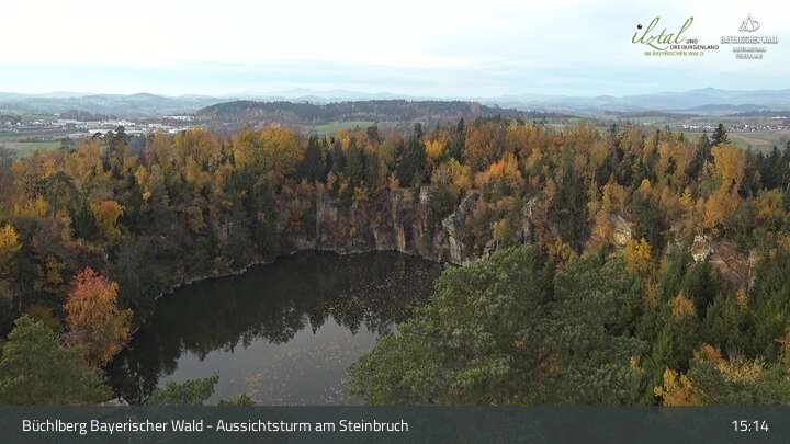 Webcam Büchlberg und Steinbruchsee vom Aussichtsturm, 527 m