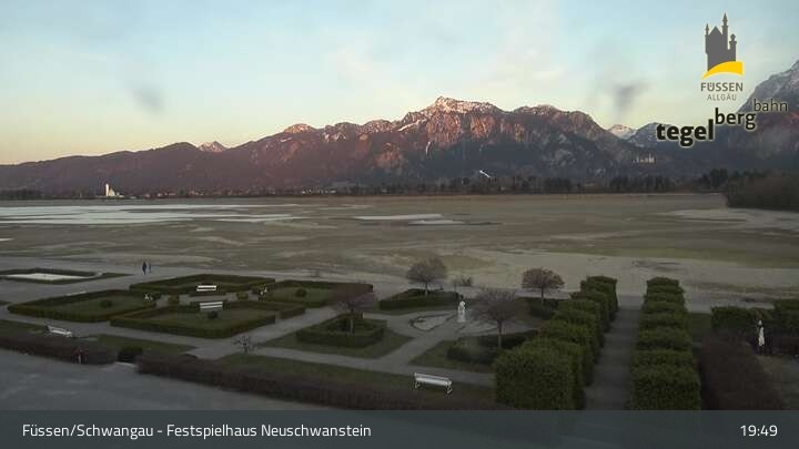 Die Webcam blickt auf den Garten von Ludwigs Festspielhaus in Füssen am Forggensee.
