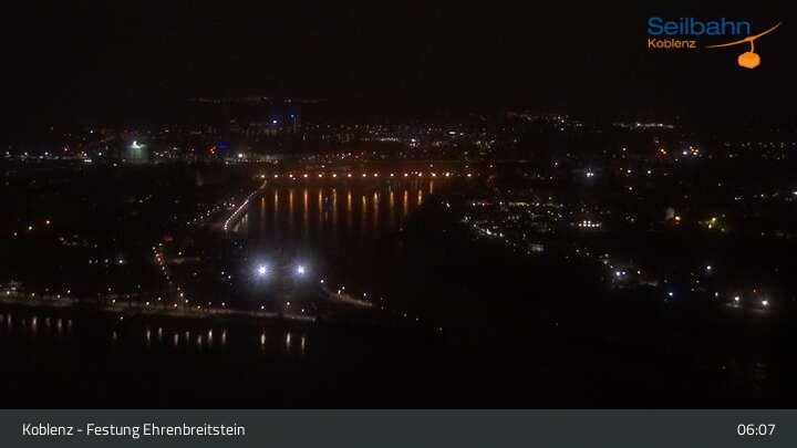 Webcam Koblenz: Blick von der Festung auf Seilbahn und Deutsches Eck, 160 m