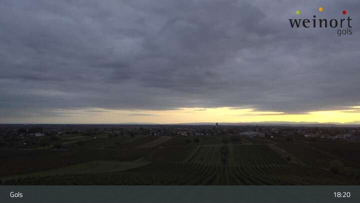 Über die Weinberge hinweg blickt die Webcam auf den Ort Gols im Burgenland.