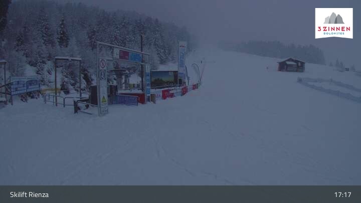 Hier siehst du im Winter aktuelle Aufnahmen aus dem Skigebiet Rienz, das sich südlich von Toblach im Hochpustertal befindet.