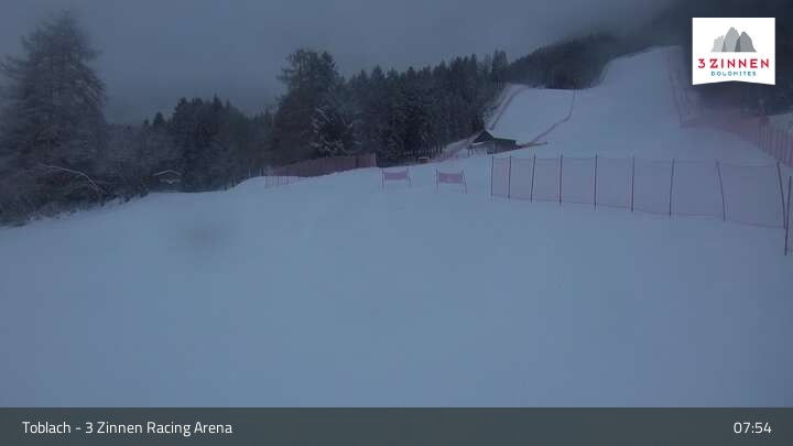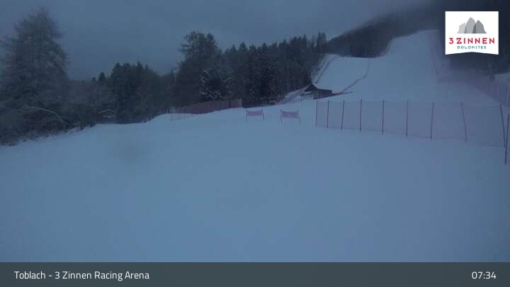 Hier siehst du die Berge rund um Toblach in Südtirol. Die Webcam befindet sich an der Talstation des Trenkerlifts.