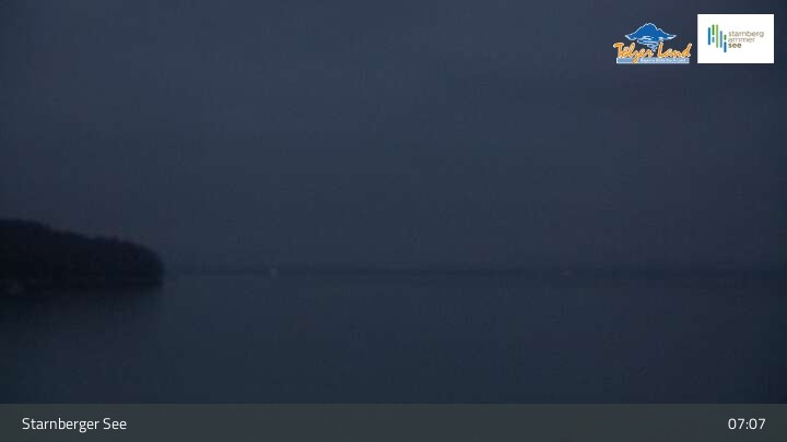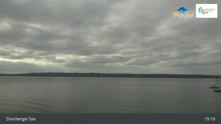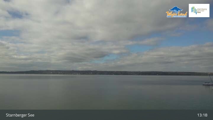 Blick auf den Starnberger See von der Wasserwacht Ammerland in der Nähe von Münsing.