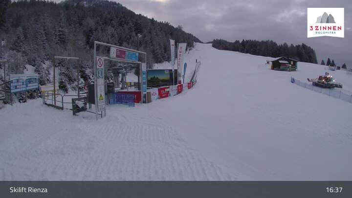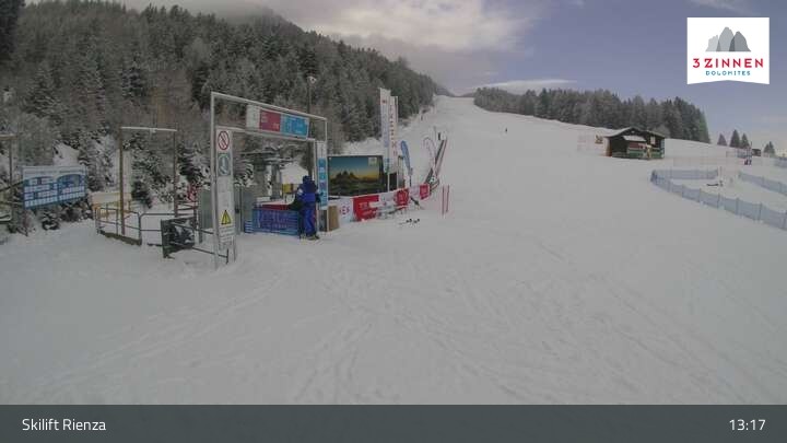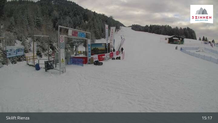 Hier siehst du im Winter aktuelle Aufnahmen aus dem Skigebiet Rienz, das sich südlich von Toblach im Hochpustertal befindet.