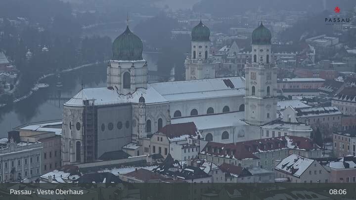 Die Webcam zeigt einen tollen Panoramablick von der Veste Oberhaus auf die Donau und die Altstadt von Passau. Neber der herrschaftlichen Burgfassade sieht man sehr gut die Landzunge zwischen Donau und Inn, auf der die Altstadt mit ihren denkmalgeschützten Häusern liegt. Gut zu erkennen sind unter anderem die Ortspitze am Zusammenfluss der drei Flüsse, das an der Donau liegende Rathaus, der weiße Dom St. Stephan und das erhöhte Kloster Mariahilf in der Innstadt.