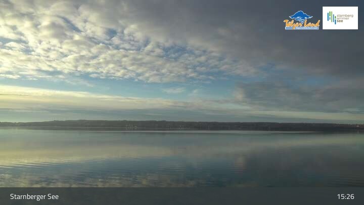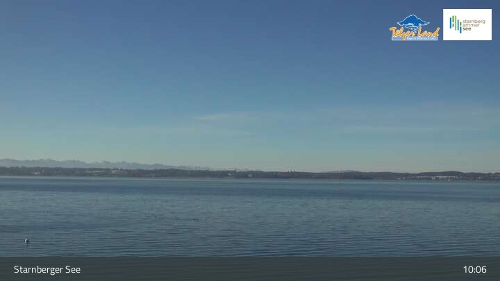 Blick auf den Starnberger See von der Wasserwacht Ammerland in der Nähe von Münsing.