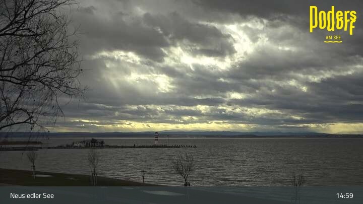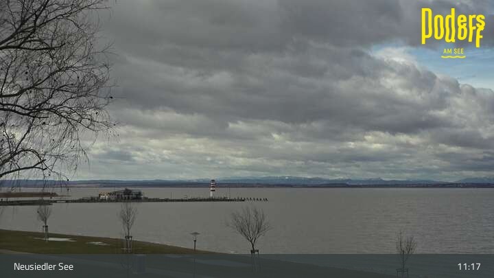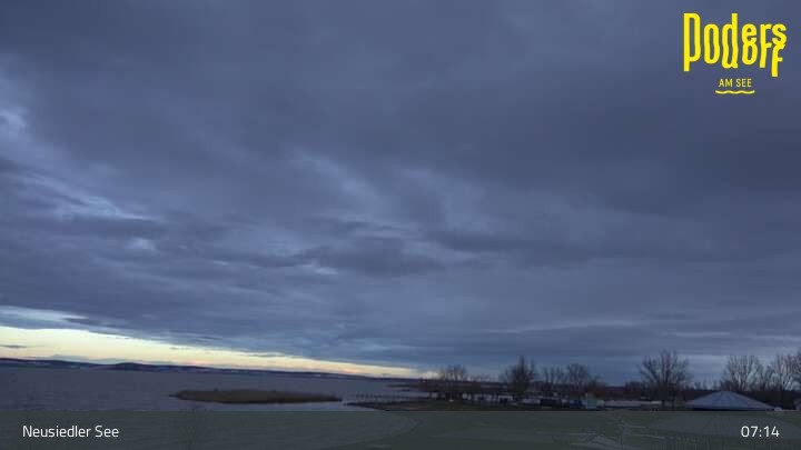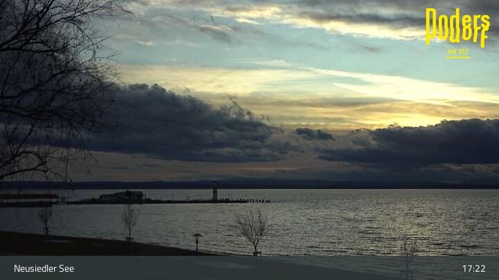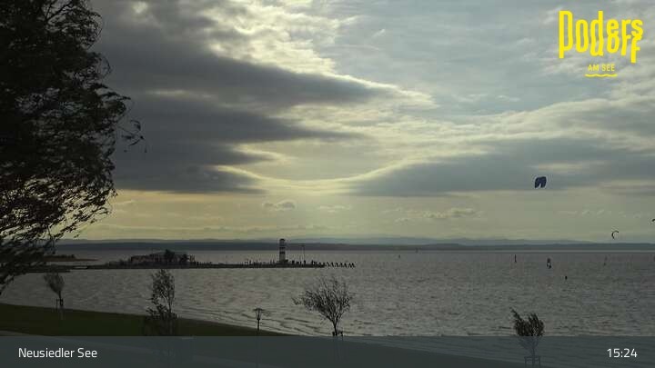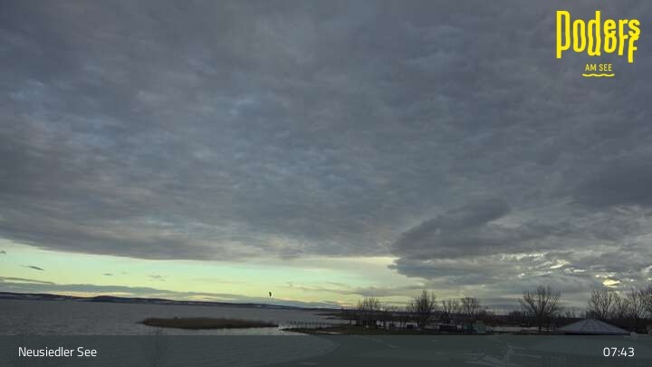 Vom Ort Podersdorf aus blickst du auf den Neusiedler See im österreichischen Bundesland Burgenland.