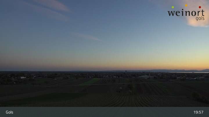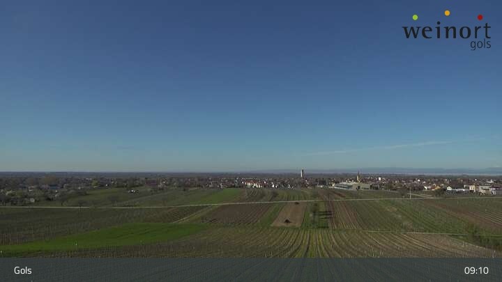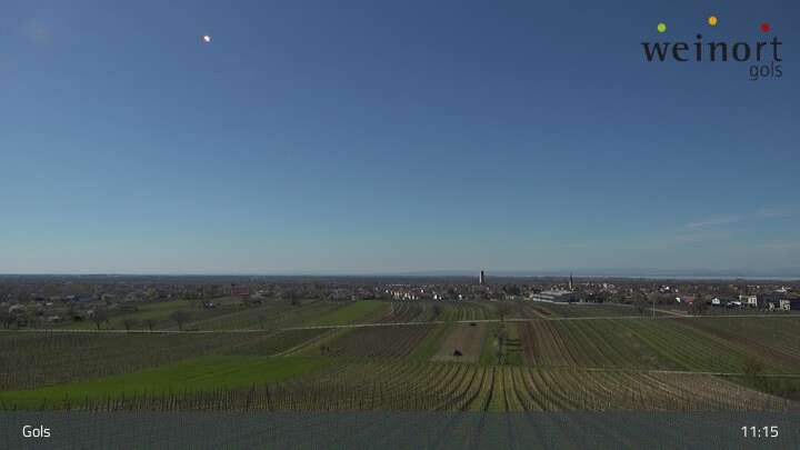 Über die Weinberge hinweg blickt die Webcam auf den Ort Gols im Burgenland.