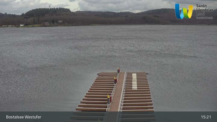 Die Kamera ist am westlichen Ufer des Bostalsee im Saarland positioniert.