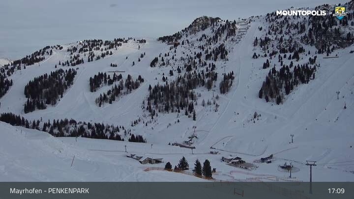 Hier blickst du auf den Vans Penken Park sowie den Sun-Jet Lift im Skigebiet Mayrhofen.