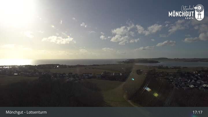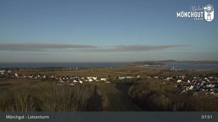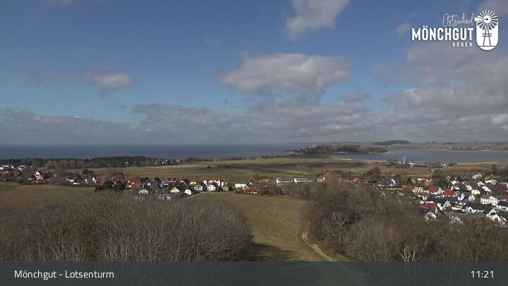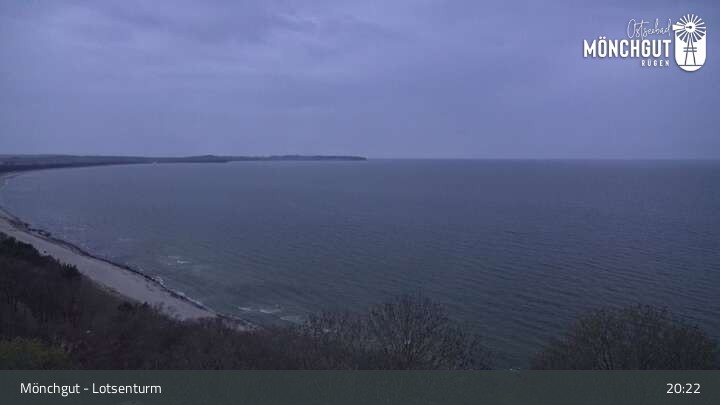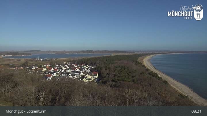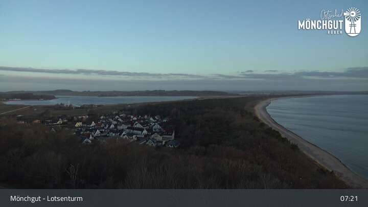 Die Webcam ist am Lotsenturm bei Thiessow positioniert und zeigt den Blick auf die Halbinsel Mönchgut, die zu Rügen gehört und an der Ostsee liegt.