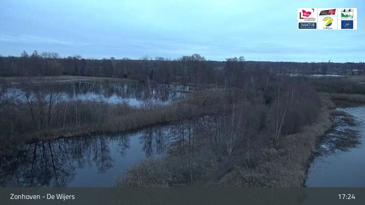 Blick über die Seenlandschaft De Wijers im belgischen Zonhoven.