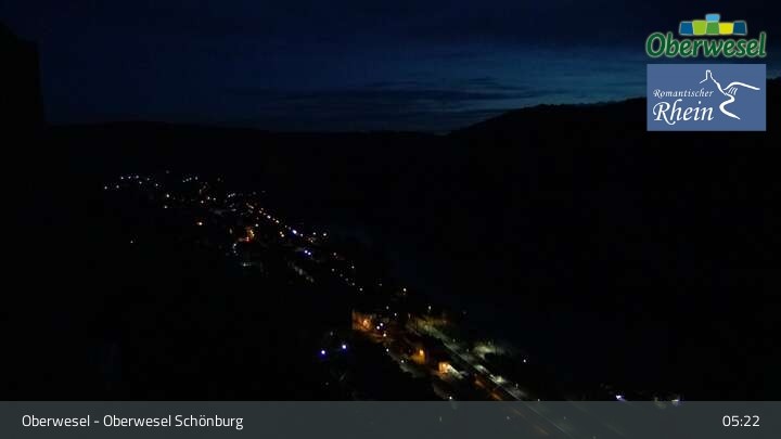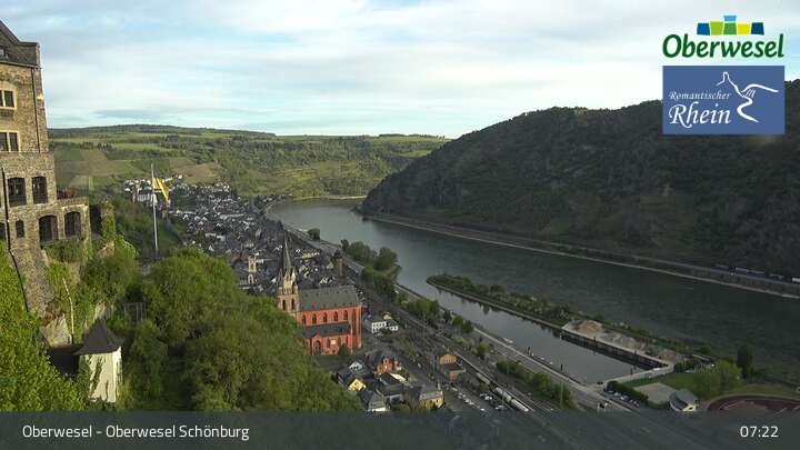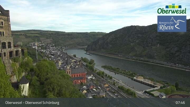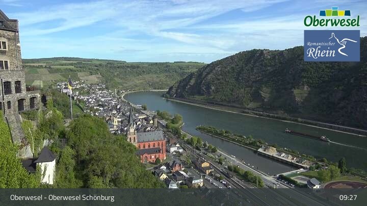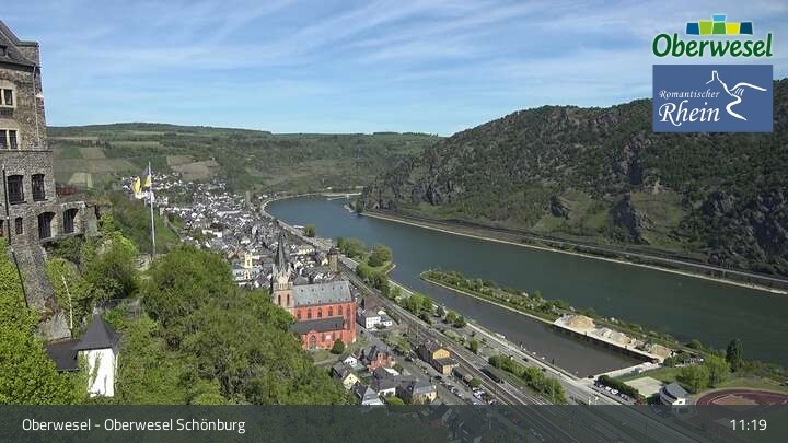 Die Webcam blickt über die Schönburg im rheinland-pfälzischen Oberwesel auf den Rhein. Die Höhenburg stammt aus dem 12. Jahrhundert.
