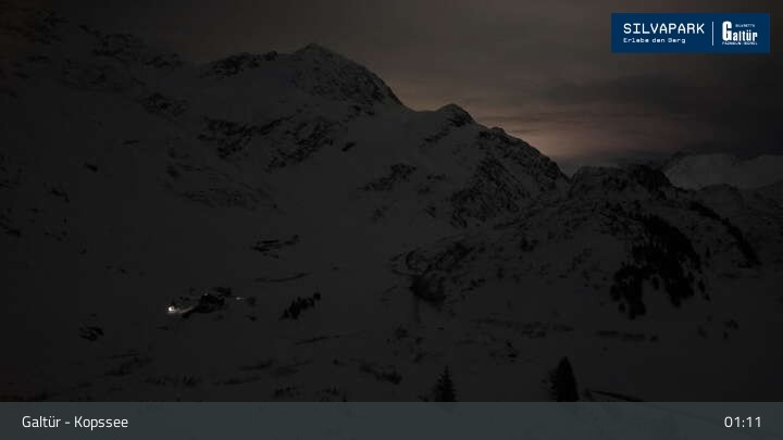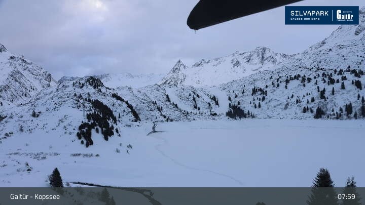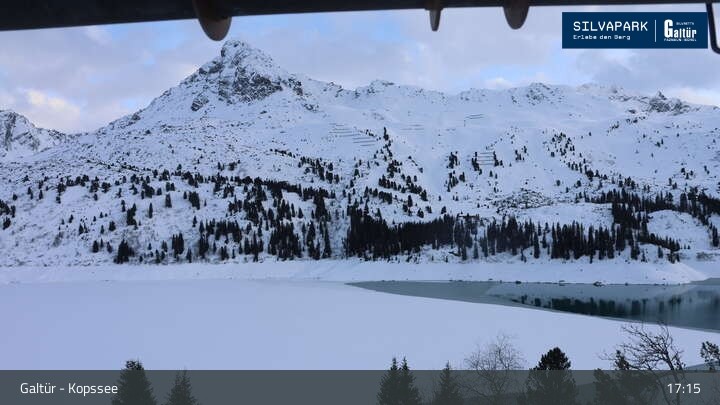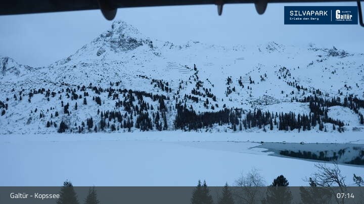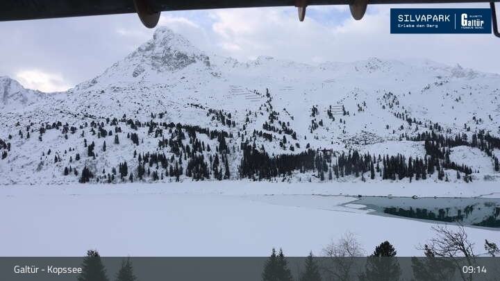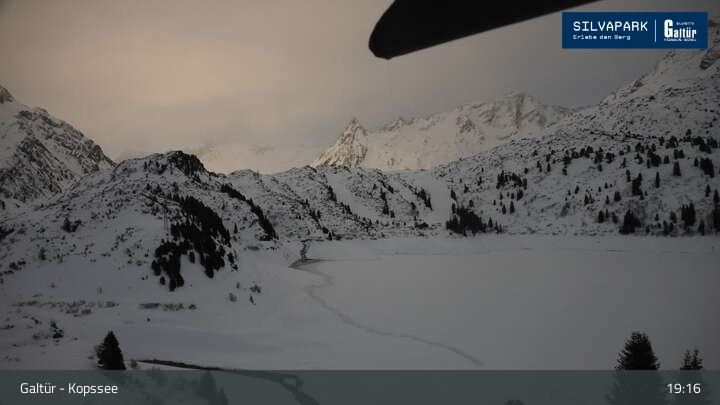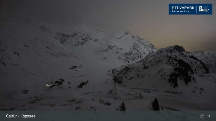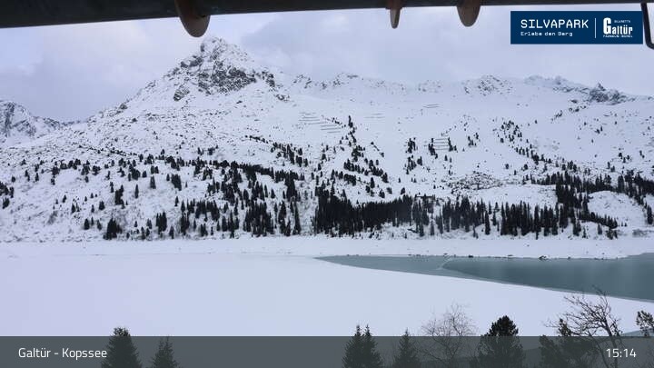 Hier siehst du den Stausee Kops in Galtür, der in den österreichischen Alpen im Bundesland Vorarlberg in der Silvretta-Gruppe liegt.