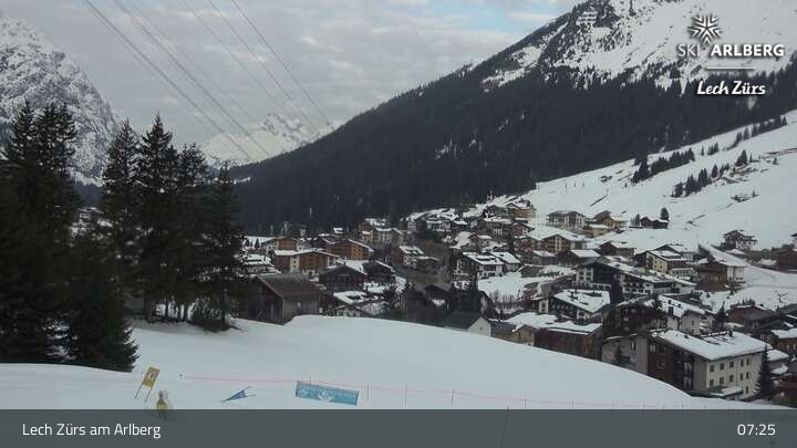 Genieße den Ausblick über die Ortschaft Oberlech sowie die umliegende Bergwelt.