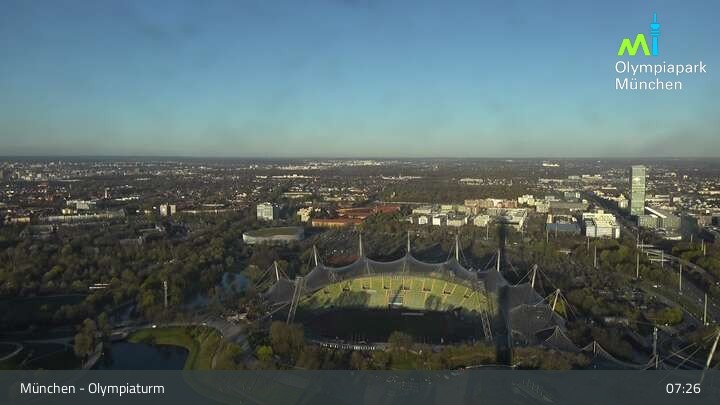 Im nordwestlichen Teil der Münchner Innenstadt befindet sich am Olympiaturm diese Webcam mit dem direkten Blick auf den Olympiapark. Zu sehen sind unter anderem das Olympiastadion und die Olympiahalle, beliebte Orte für Veranstaltungen und Konzerte. Wichtiger Hinweis: Bei großen Veranstaltungen kann es sein, dass die Webcam vorübergehend deaktiviert wird.